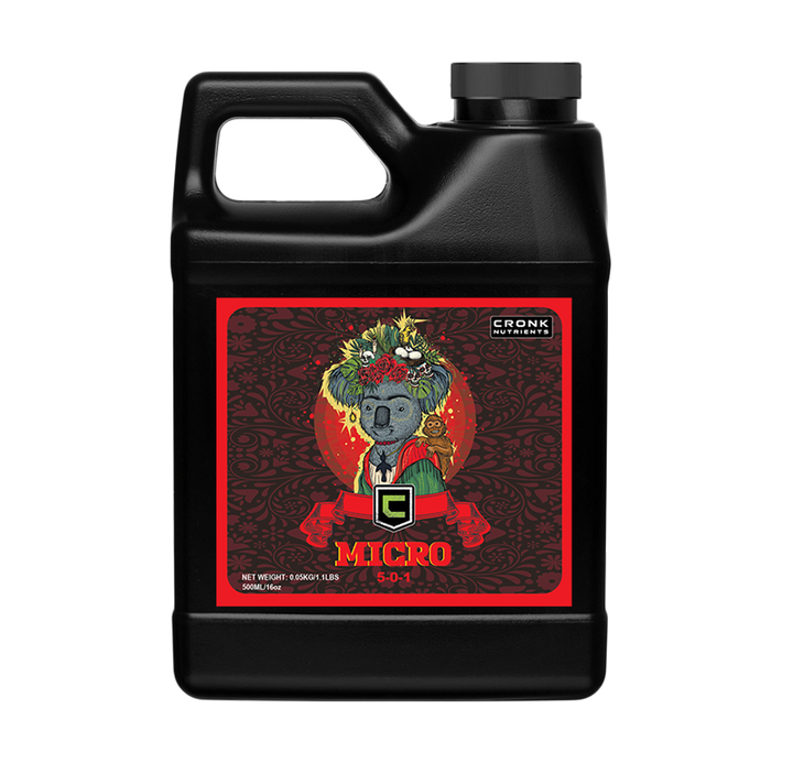 Cronk Nutrients' Micro is the foundation of their 3-part base nutrient system, providing both macro and micro-nutrients for healthy growth, strong roots, and abundant flowering and fruiting. With a nutrient ratio of 5-0-1, Micro sets the stage for the rest of your plant's growth cycle, making it an essential component for growers of all levels.