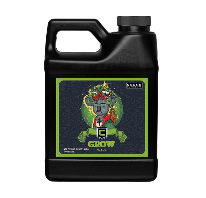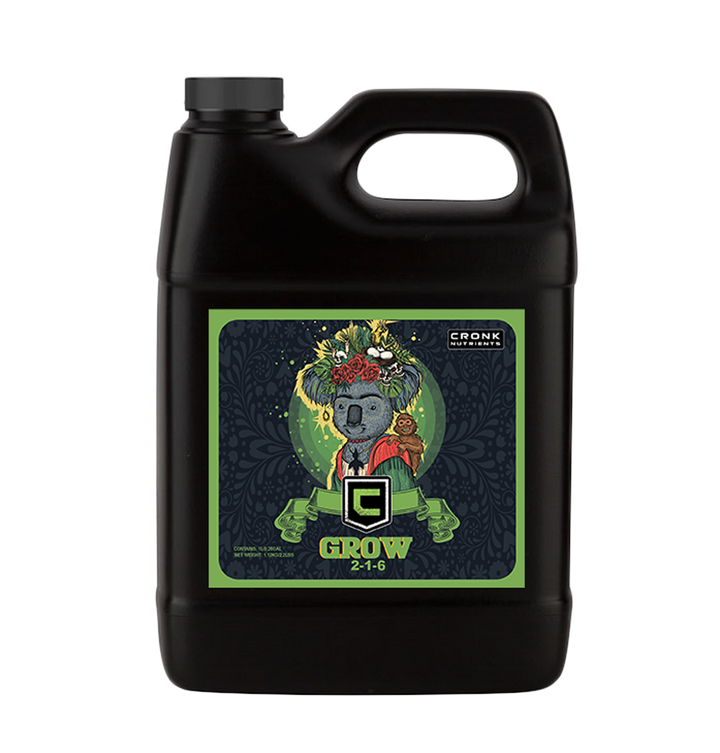 Fuel vegetative growth with Cronk Nutrients' Grow, a key part of our 3-part nutrient system. Its 2-1-6 nutrient ratio delivers vital macros and micros for strong stems and healthy growth. Ideal for diverse plants and grow mediums, Grow is essential for peak plant potential.